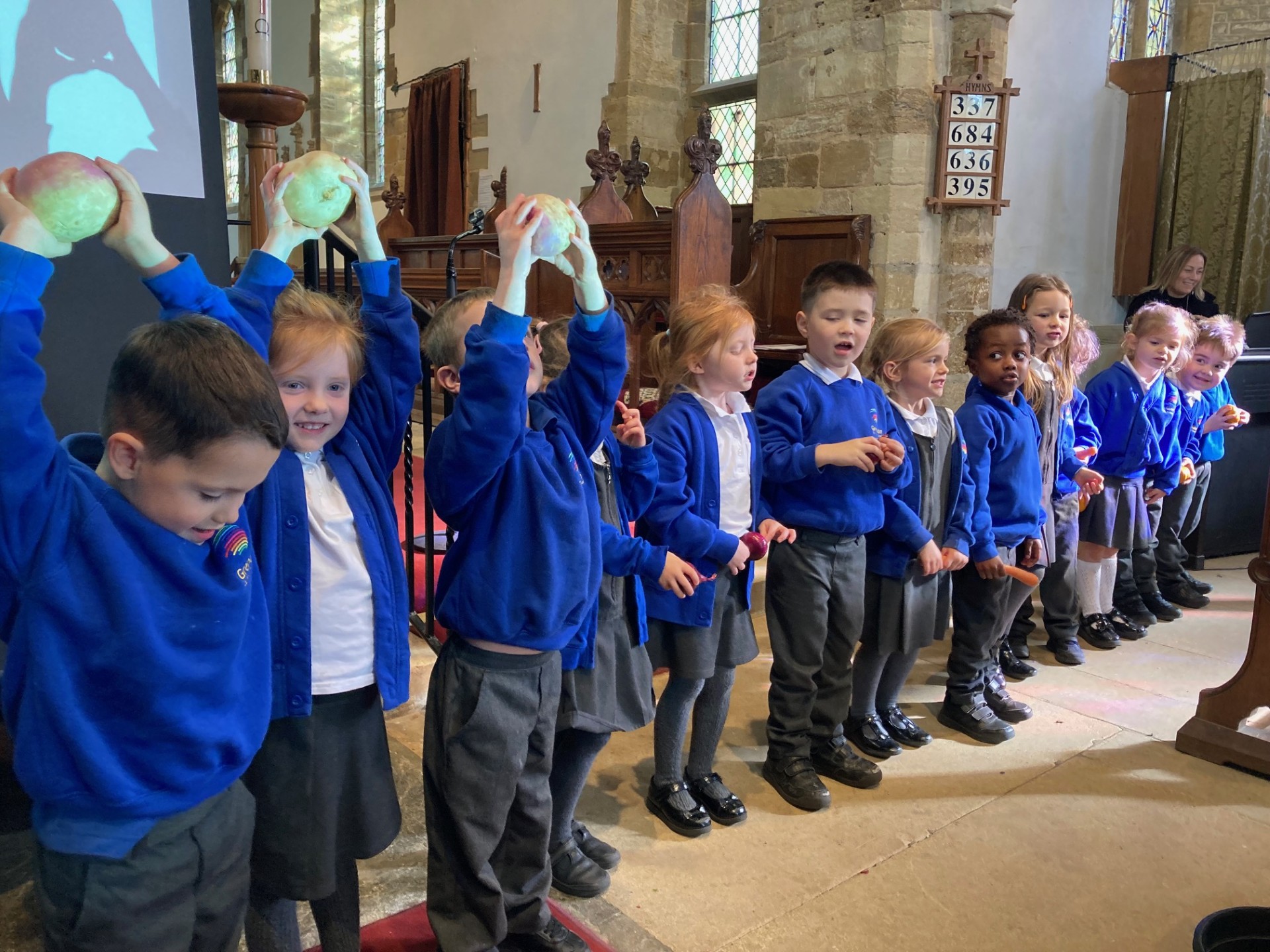 Reception stole the show at our harvest service! The 'Chuggy Chuggy Chug Chug/Big Blue Tractor' song was brilliant, as were the presentations by each class about life along the River Nile, The Journey Of Chocolate and the amazing Diwali work, all linked to harvest and giving. The Year 6 pupils and Mrs Rush presented a special harvest prayer and Miss Hunting led the children's fantastic singing. I hope you all enjoyed the service as much as we did.