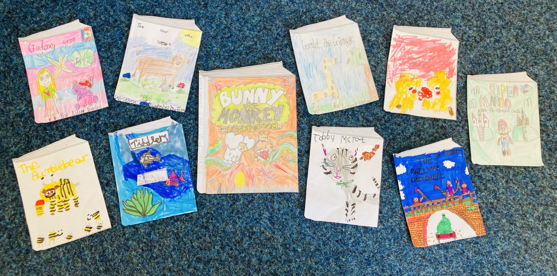 The winners of the Book Cover Design Competition were Elijah (Spot Loves His Mum), Elliot (The Bumblebear), Allegra (Tiddler), Xander (Tabby McTat), Henry (The Railway Children), Eva (The Cow Who Forgave), Niamh (Gerald The Giraffe), Lilian (Galaxy Frog), Leo (Super Mario And The Abandoned Castle) and William (Bunny Vs Monkey).